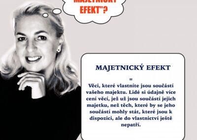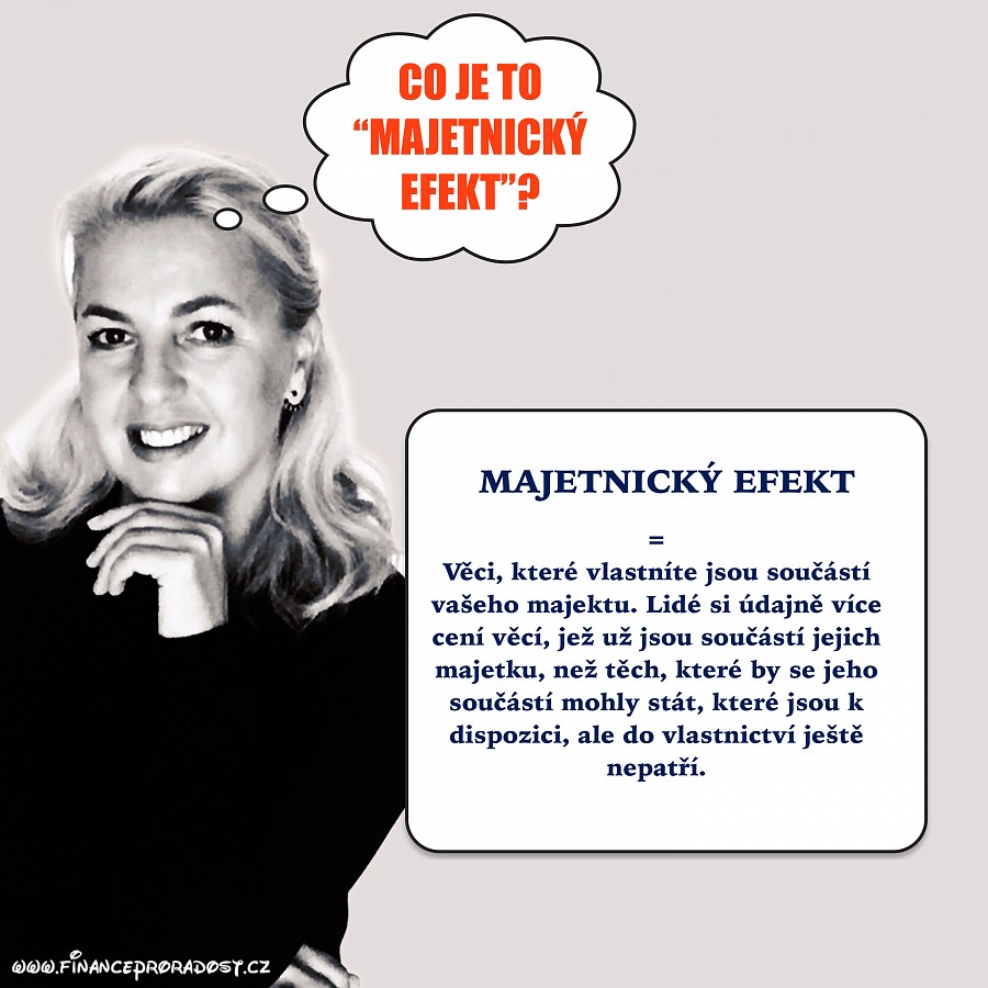 - Věci, které vlastníme, jsou součástí našeho majektu. Lidé si daleko více cení věcí, jež už jsou součástí majetku, než těch, které by se jeho součástí mohly stát, které jsou k dispozici, ale do vlastnictví ještě nepatří.