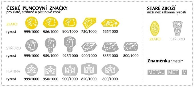 Pro ty z vás, kteří jsou vlastníky zlatých předmětů české výroby bude poučením (i zábavou) přesvědčí-li se na vlastní oči (nebo za pomoci lupy), že značky na jejich prstenech, náramcích, přívěscích a jiných zlatých skvostech se shodují s těmi, které jsou úředně stanoveny. Tak co jakou ryzost má váš zlatý, stříbrný či platinový poklad? ,-)