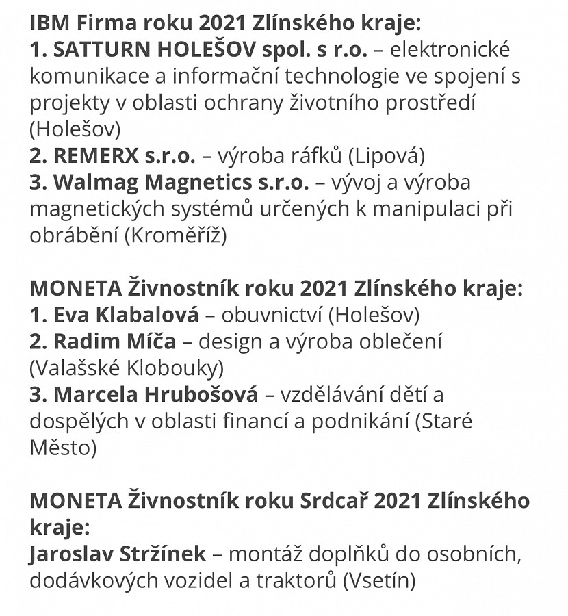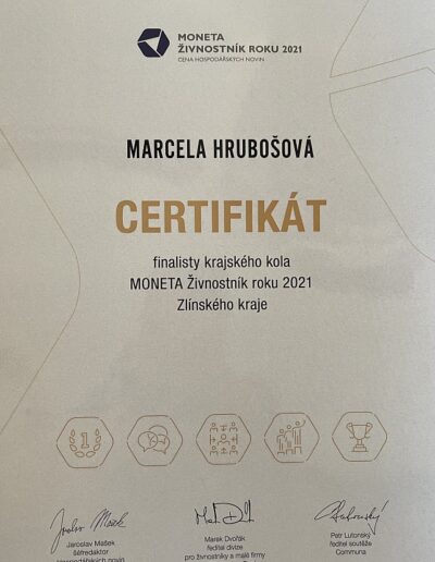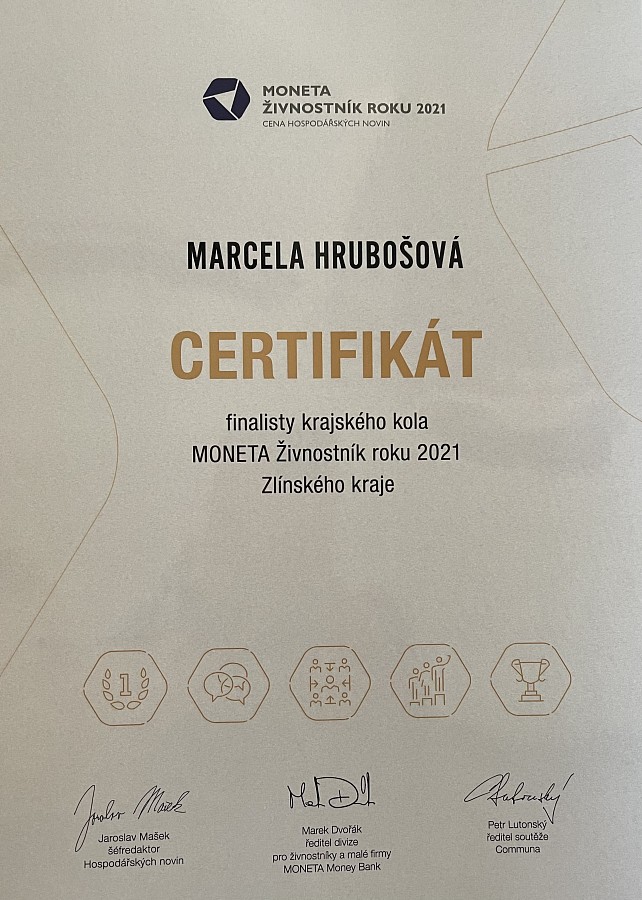Marcela Hrubošová s učením Finance pro radost získala ve Zlínském kraji ocenění za svou práci a 3.místo v soutěži ŽIVNOSTNÍK ROKU 2021.