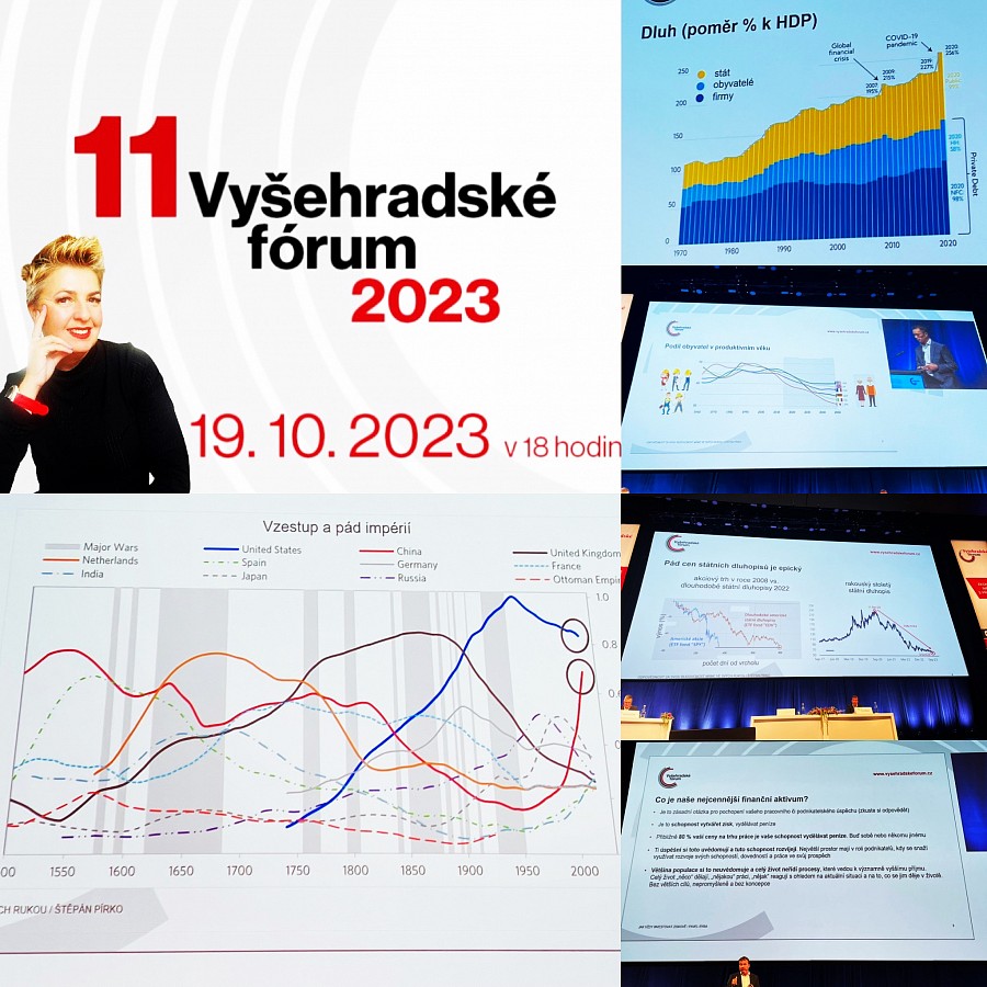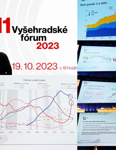 10. Co zajímavého zaznělo na letošním 11. Vyšehradském fóru 2023? Je třeba vzít zodpovědnost za svou budoucnost do svých rukou – naučit se diverzifikovat své příjmy – vidět věci v kontextu – pozor na “dobré myšlenky”, ale v jiných časech – dluhy nás doženou – vymíráme, ale dožíváme se vyššího věku, což způsobuje problém ve financování staří – k záchraně planety, volíme nižší efektivitu… čímž škodíme planetě i sami sobě.