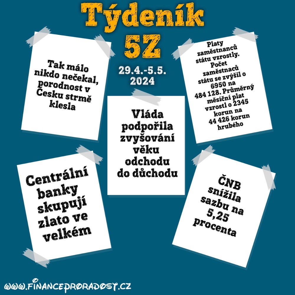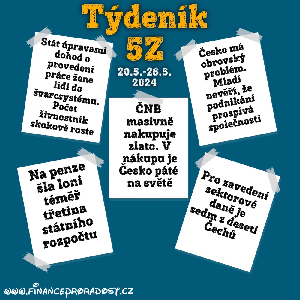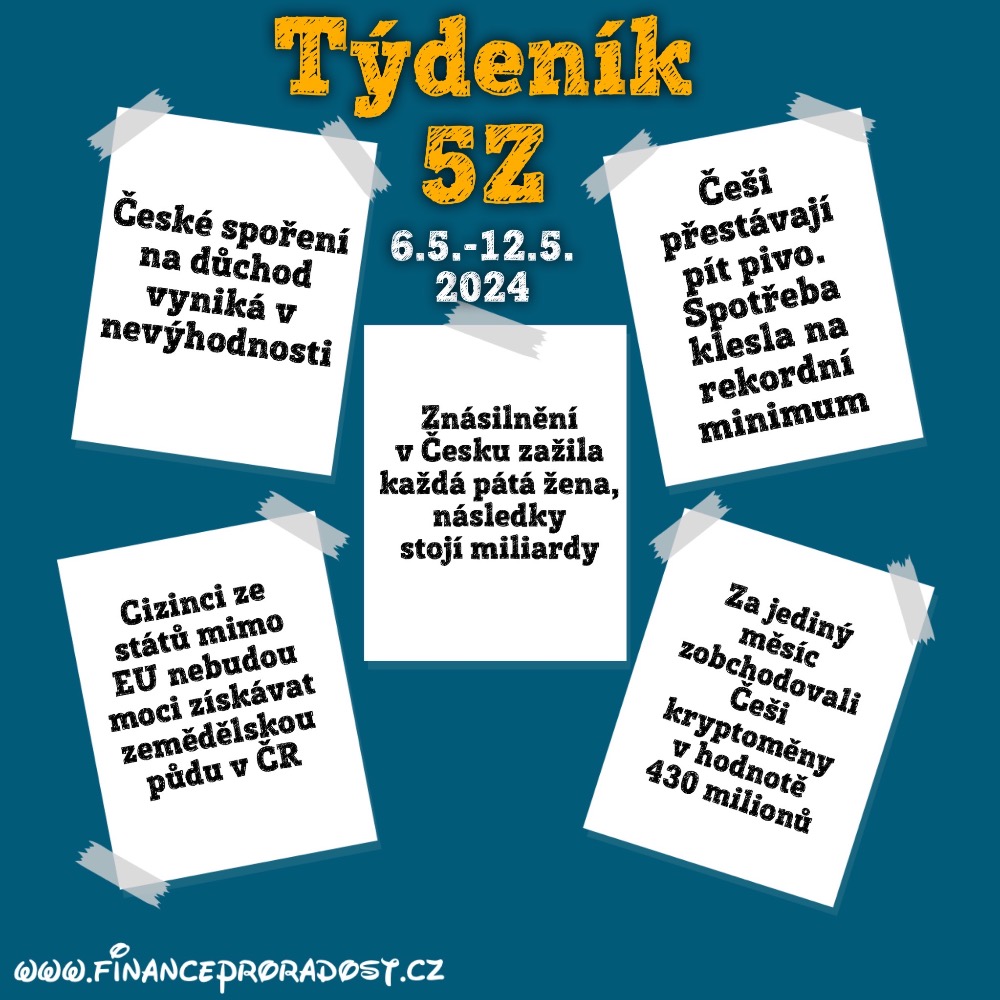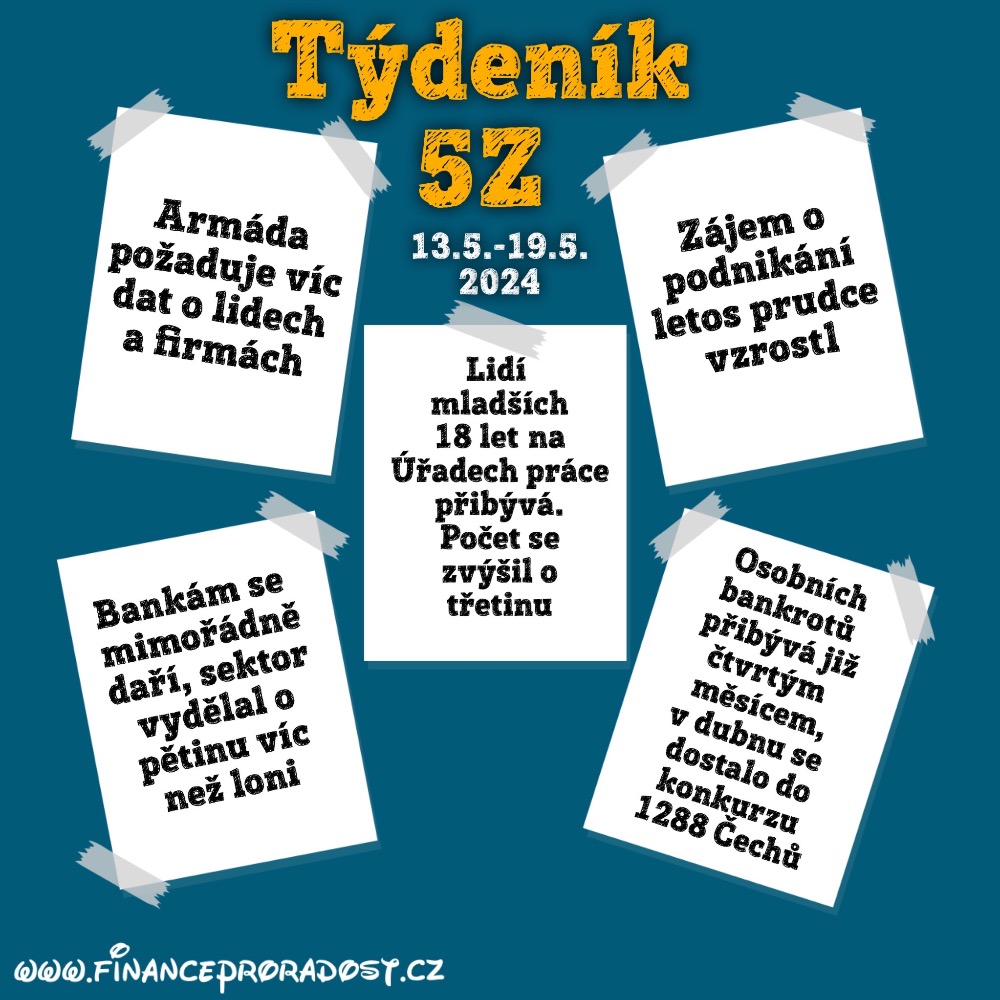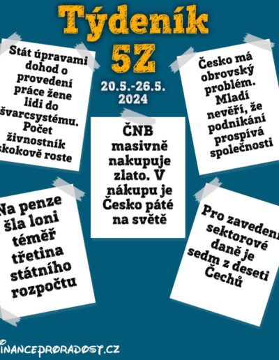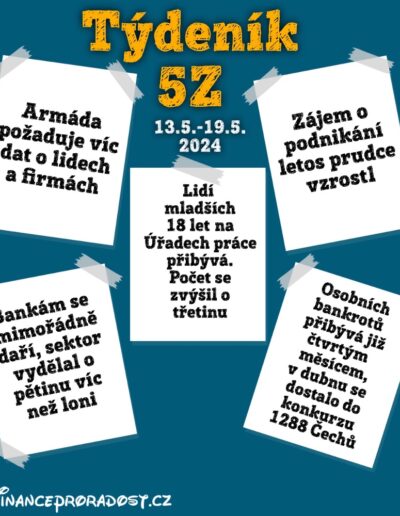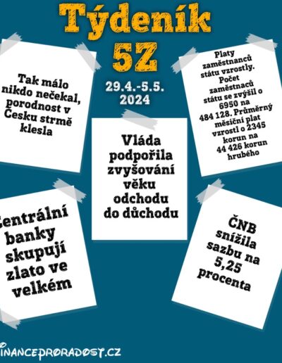 1. Týdeník 5Z: 29.4.-26.5.2024 – ekonomické zprávy a zajímavosti v oblasti financí z českého prostředí v týdenním monitoringu