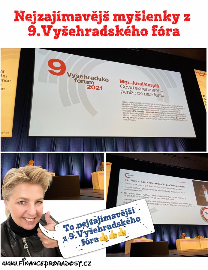 Ve čtvrtek 21.10.2021 se konalo 9. Vyšehradské fórum v Kongresovém paláci v Praze, kam jsou zváni přední ekonomové, aby se podělili o své know-how a zkušenosti v oblasti financí, a nastínili, jak nejlépe pracovat s penězi, a utvářet svůj majetek a bohatství v časech dobrých i zlých. Letošními přednášejícími byli Mgr. Juraj Karpiš s tématem: Covid experiment – peníze po pandemii, a Pavel Ryba: 17 zlatých pravidel bezpečného investování a správy majetku.
