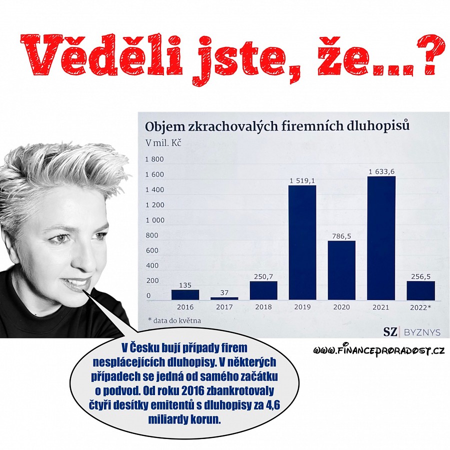 Lidé tak ochotně investují své úspory do dluhopisů, kterým nerozumí a nechají se mylně klamat, že takzvaný PROSPEKT, který musí veřejně obchodované dluhopisy ze zákona obsahovat, a schvaluje jej právě Česká národní banka, zakládá garanci a jistotu nejen vrácení investovaných peněz, ale i vyplacení zhodnocení 6-7%, jak jsou dluhopisy dnes nejčastěji nabízeny.