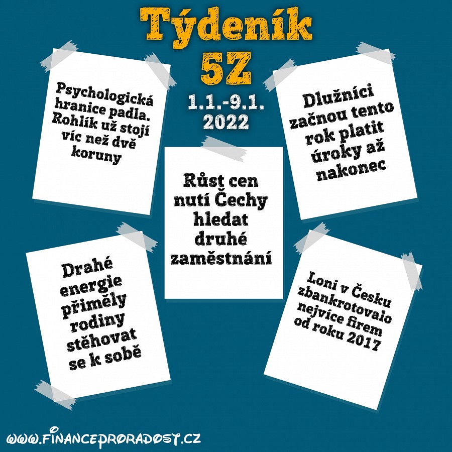 Týdeník 5Z: Pět zajímavostí z české ekonomiky, které se staly v tomto týdnu (1.1.-9.1.2022), a neměli bychom je přehlédnout.