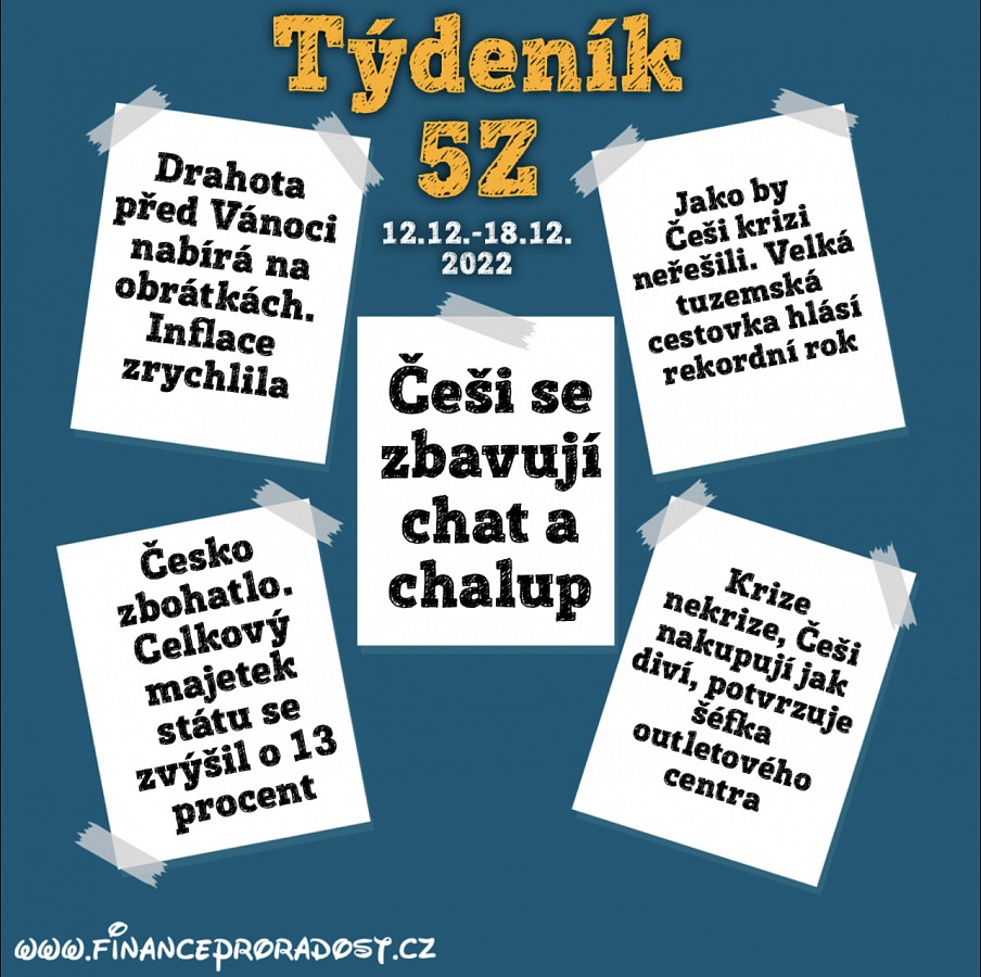 Týdeník 5Z: Pět zajímavostí z české ekonomiky, které se staly v tomto týdnu (12.12.-18.12.2022), a neměli bychom je přehlédnout.