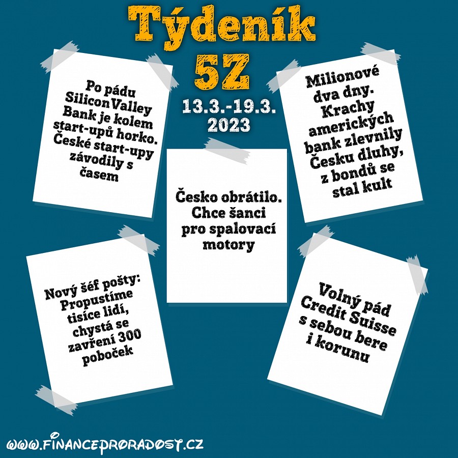 Týdeník 5Z: Pět zajímavostí z české ekonomiky, které se staly v tomto týdnu (13.3.-19.3.2023), a neměli bychom je přehlédnout.