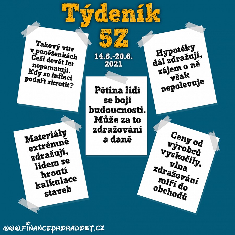 Týdeník 5Z: Pět zajímavostí z české ekonomiky, které se staly v tomto týdnu (14.6.-20.6.2021), a neměli bychom je přehlédnout.