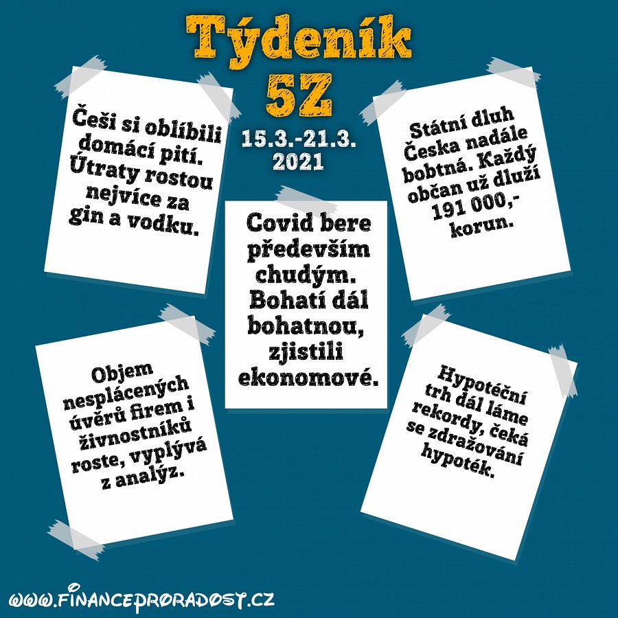 Týdeník 5Z: Pět zajímavostí z české ekonomiky, které se staly v tomto týdnu (15.3.-21.3.2021), a neměli bychom je přehlédnout.