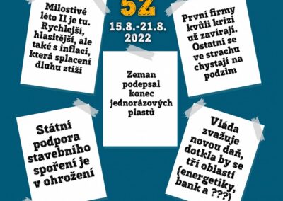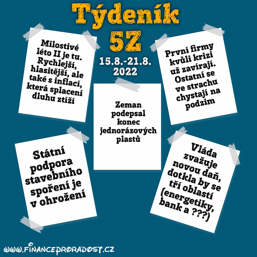 Týdeník 5Z: Pět zajímavostí z české ekonomiky, které se staly v tomto týdnu (15.8.-21.8.2022), a neměli bychom je přehlédnout.
