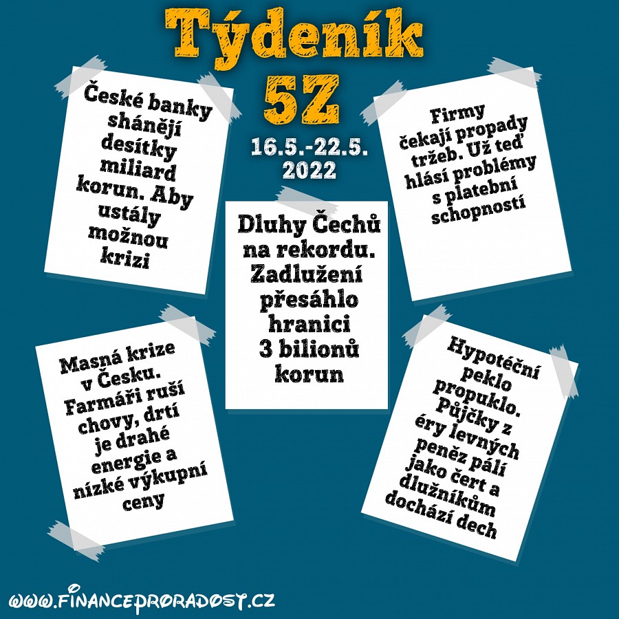 Týdeník 5Z: Pět zajímavostí z české ekonomiky, které se staly v tomto týdnu (16.5.-22.5.2022), a neměli bychom je přehlédnout.