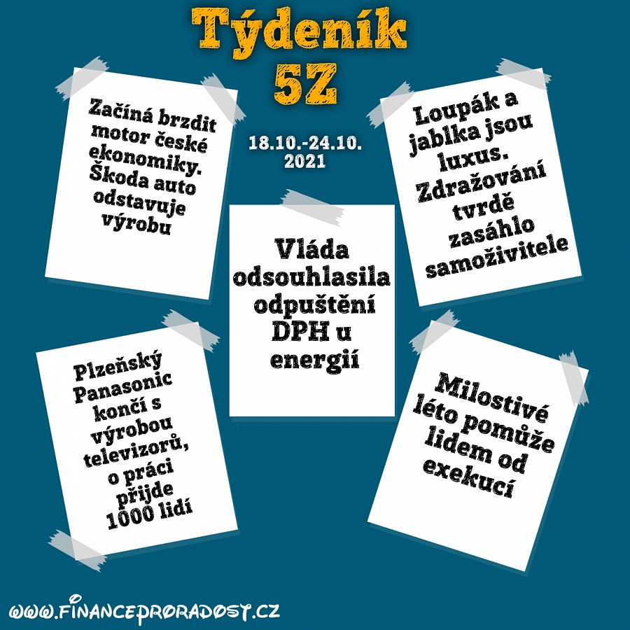 Týdeník 5Z: Pět zajímavostí z české ekonomiky, které se staly v tomto týdnu (18.10.-24.10.2021), a neměli bychom je přehlédnout.