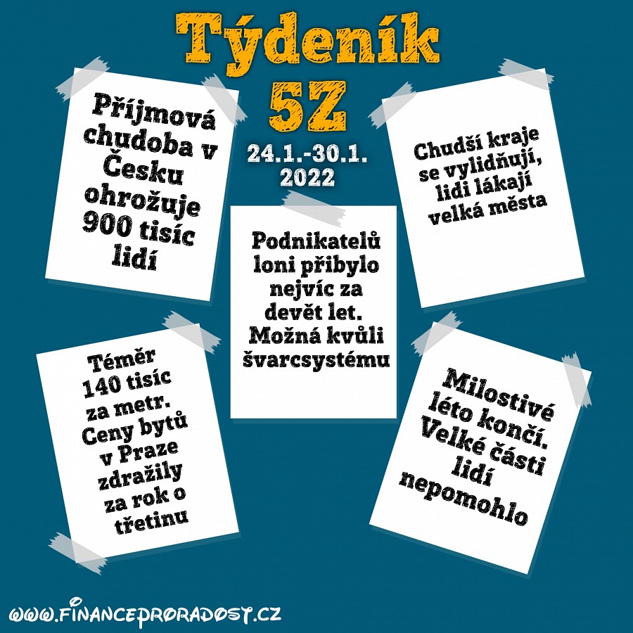 Týdeník 5Z: Pět zajímavostí z české ekonomiky, které se staly v tomto týdnu (24.1.-30.1.2022), a neměli bychom je přehlédnout.