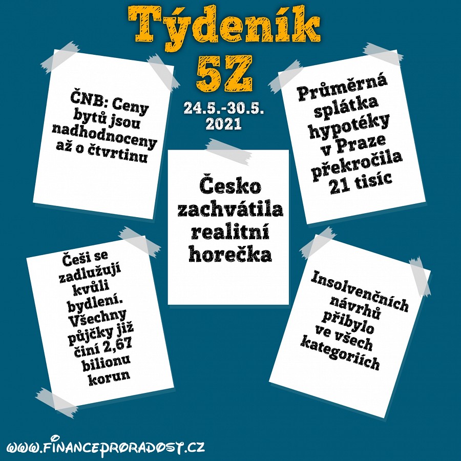 Týdeník 5Z: Pět zajímavostí z české ekonomiky, které se staly v tomto týdnu (24.5.-30.5.2021), a neměli bychom je přehlédnout.