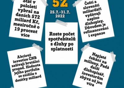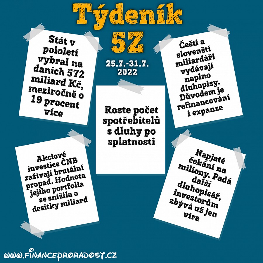 Týdeník 5Z: Pět zajímavostí z české ekonomiky, které se staly v tomto týdnu (25.7.-31.7.2022), a neměli bychom je přehlédnout.