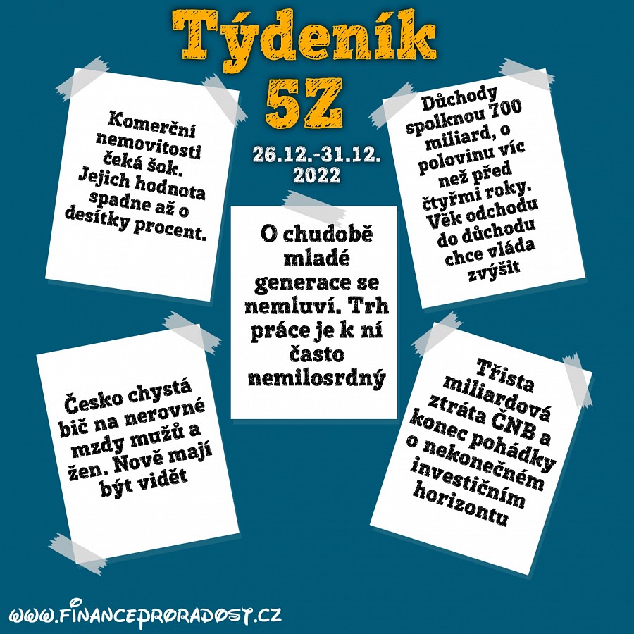 Týdeník 5Z: Pět zajímavostí z české ekonomiky, které se staly v tomto týdnu (26.12.-31.12.2022), a neměli bychom je přehlédnout.