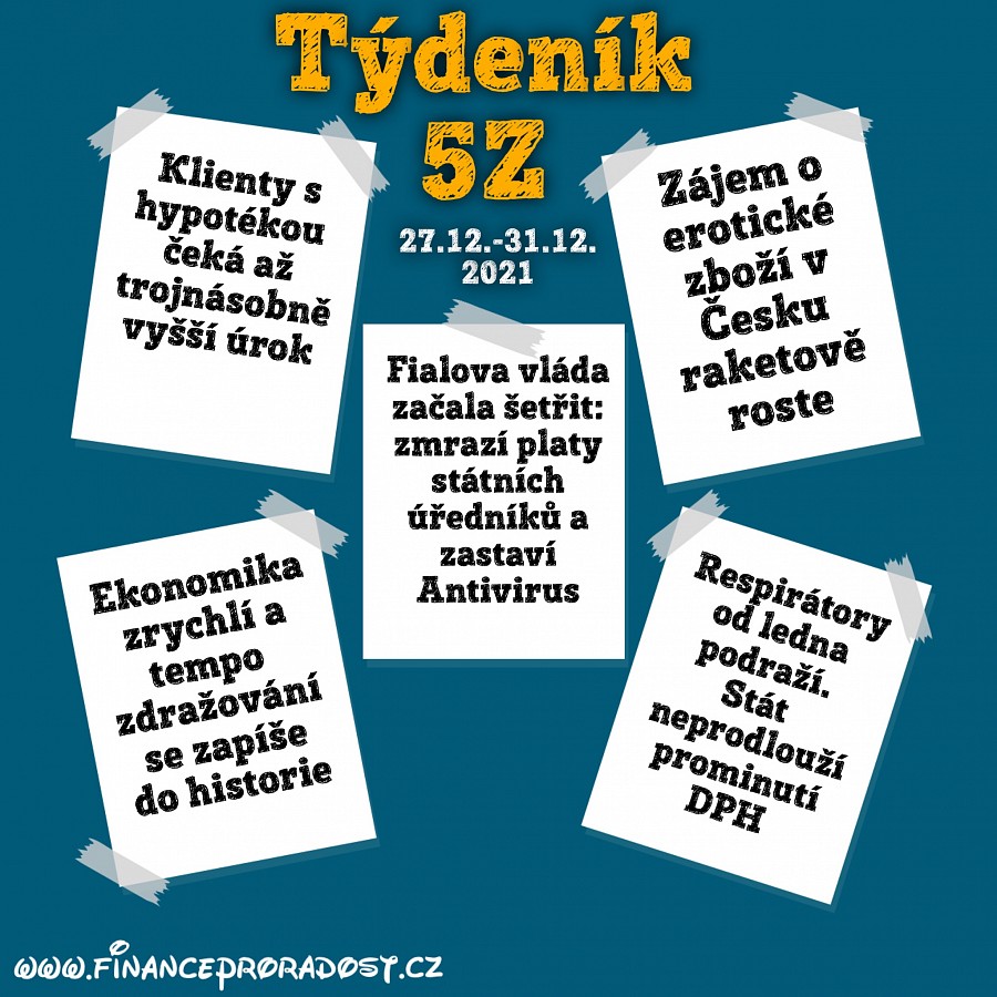 Týdeník 5Z: Pět zajímavostí z české ekonomiky, které se staly v tomto týdnu (27.12.-31.12.2021), a neměli bychom je přehlédnout.