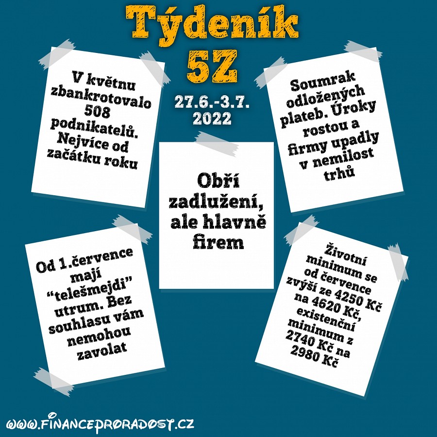 Týdeník 5Z: Pět zajímavostí z české ekonomiky, které se staly v tomto týdnu (27.6.-3.7.2022), a neměli bychom je přehlédnout.
