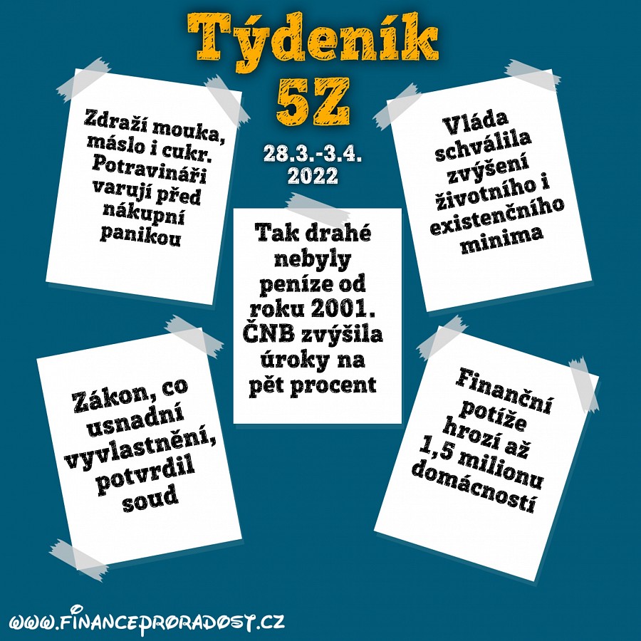 Týdeník 5Z: Pět zajímavostí z české ekonomiky, které se staly v tomto týdnu (28.3.-3.4.2022), a neměli bychom je přehlédnout.
