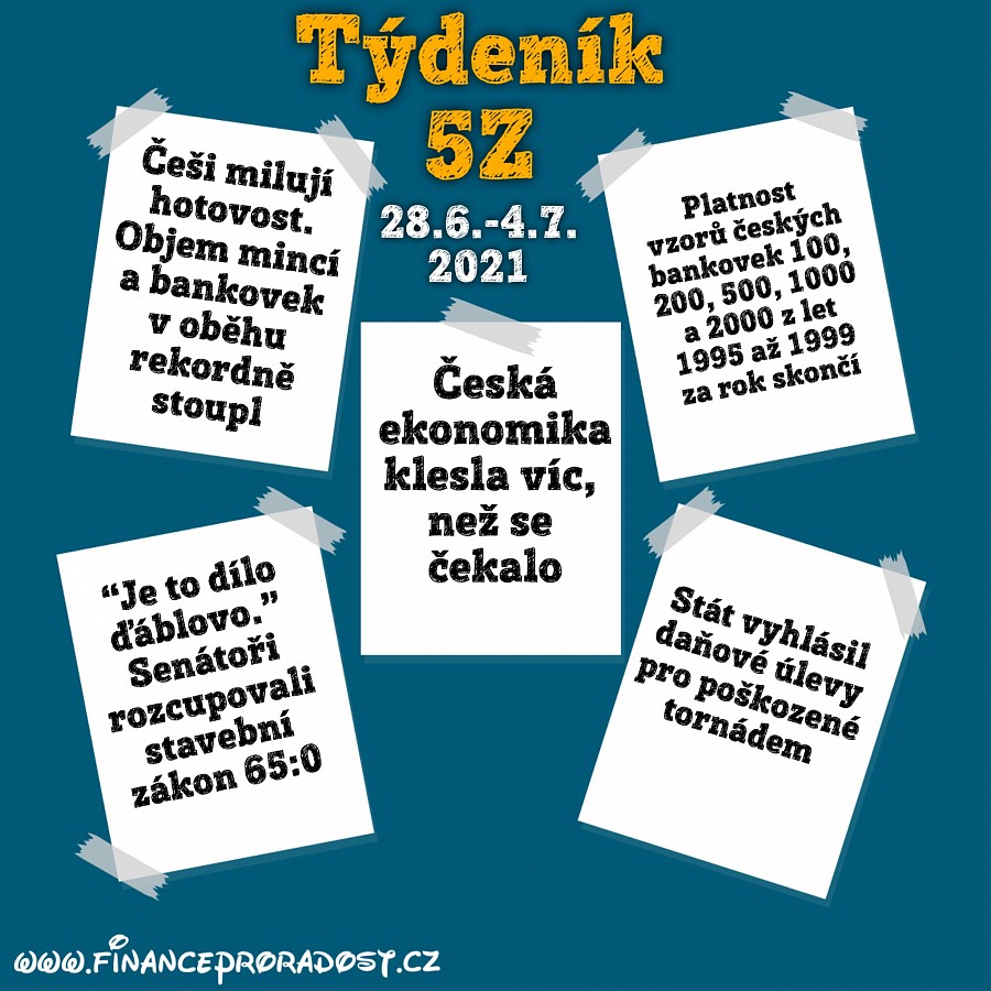 Týdeník 5Z: Pět zajímavostí z české ekonomiky, které se staly v tomto týdnu (28.6.-4.7.2021), a neměli bychom je přehlédnout.