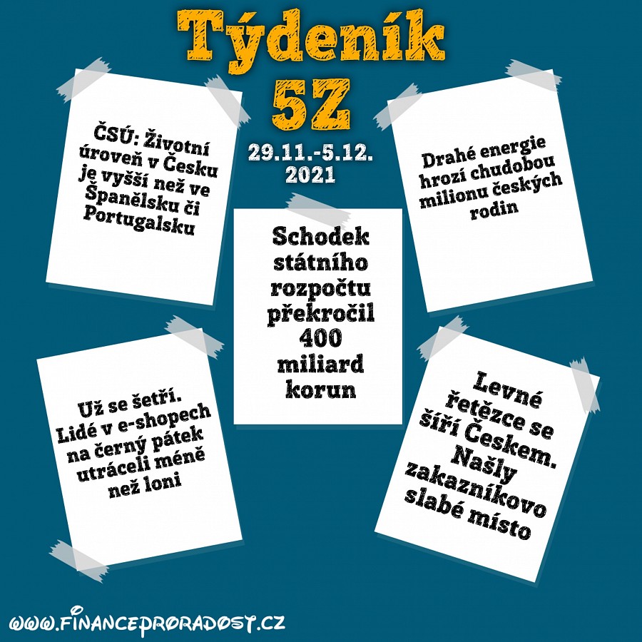 Týdeník 5Z: Pět zajímavostí z české ekonomiky, které se staly v tomto týdnu (29.11.-5.12.2021), a neměli bychom je přehlédnout.