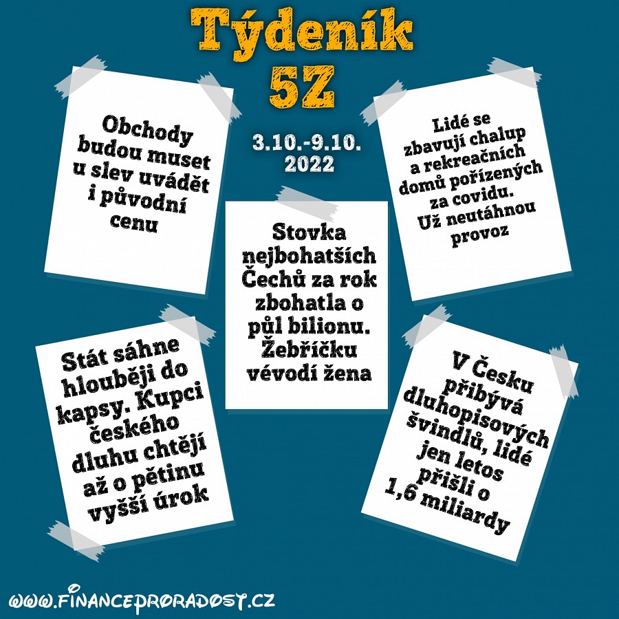 Týdeník 5Z: Pět zajímavostí z české ekonomiky, které se staly v tomto týdnu (3.10.-9.10.2022), a neměli bychom je přehlédnout.
