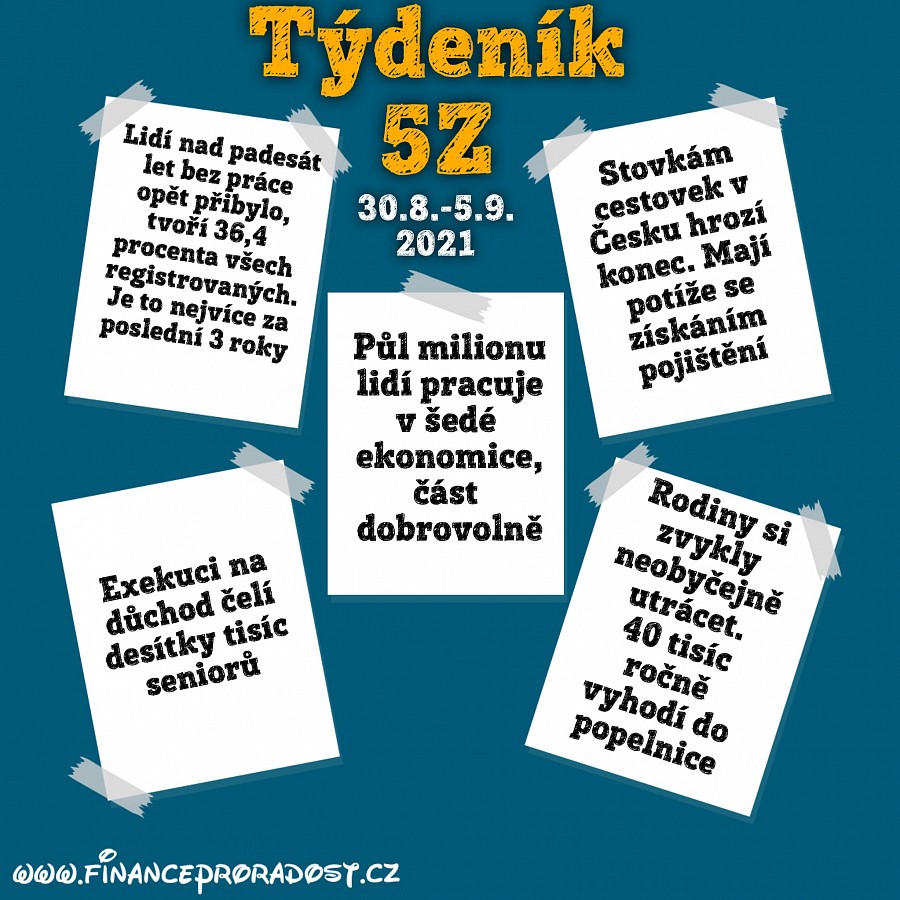 Týdeník 5Z: Pět zajímavostí z české ekonomiky, které se staly v tomto týdnu (30.8.-5.9.2021), a neměli bychom je přehlédnout.