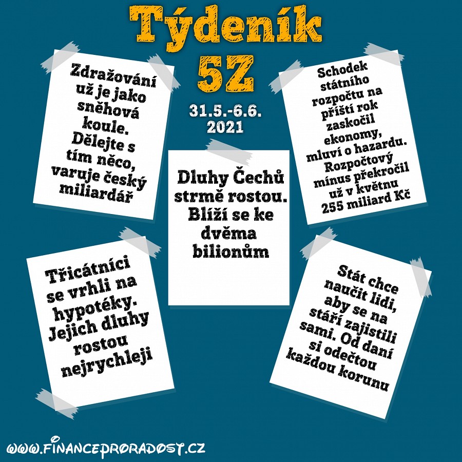 Týdeník 5Z: Pět zajímavostí z české ekonomiky, které se staly v tomto týdnu (31.5.-6.6.2021), a neměli bychom je přehlédnout.
