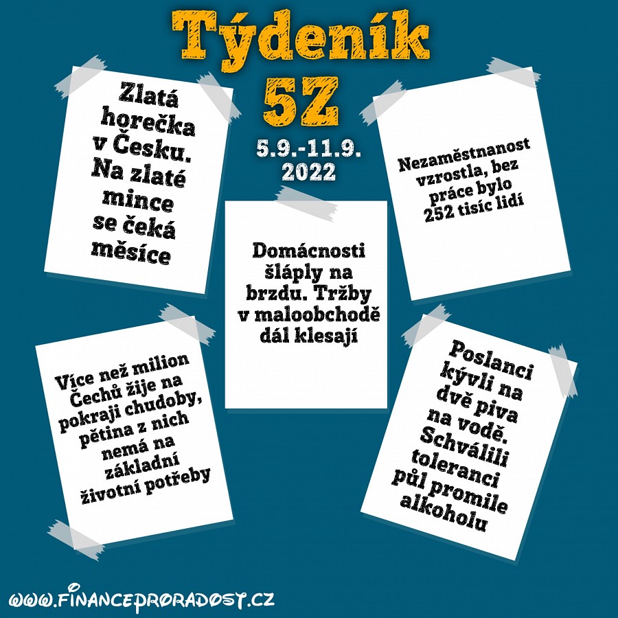 Týdeník 5Z: Pět zajímavostí z české ekonomiky, které se staly v tomto týdnu (5.9.-11.9.2022), a neměli bychom je přehlédnout.