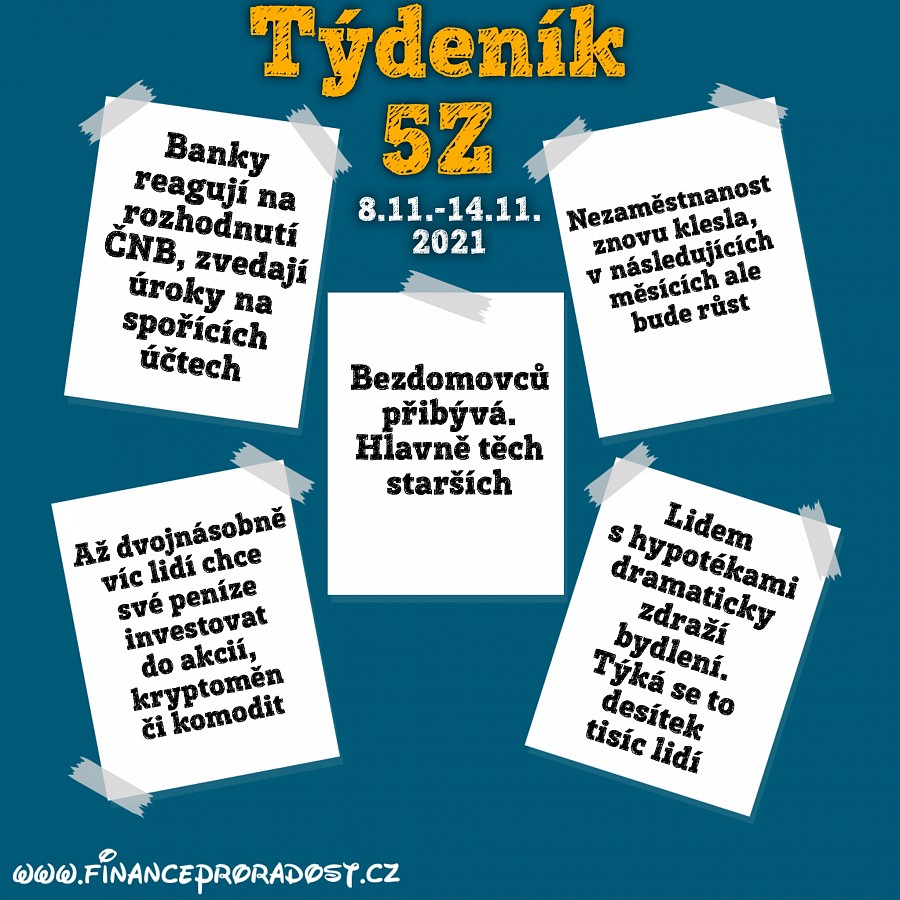 Týdeník 5Z: Pět zajímavostí z české ekonomiky, které se staly v tomto týdnu (8.11.-14.11.2021), a neměli bychom je přehlédnout.