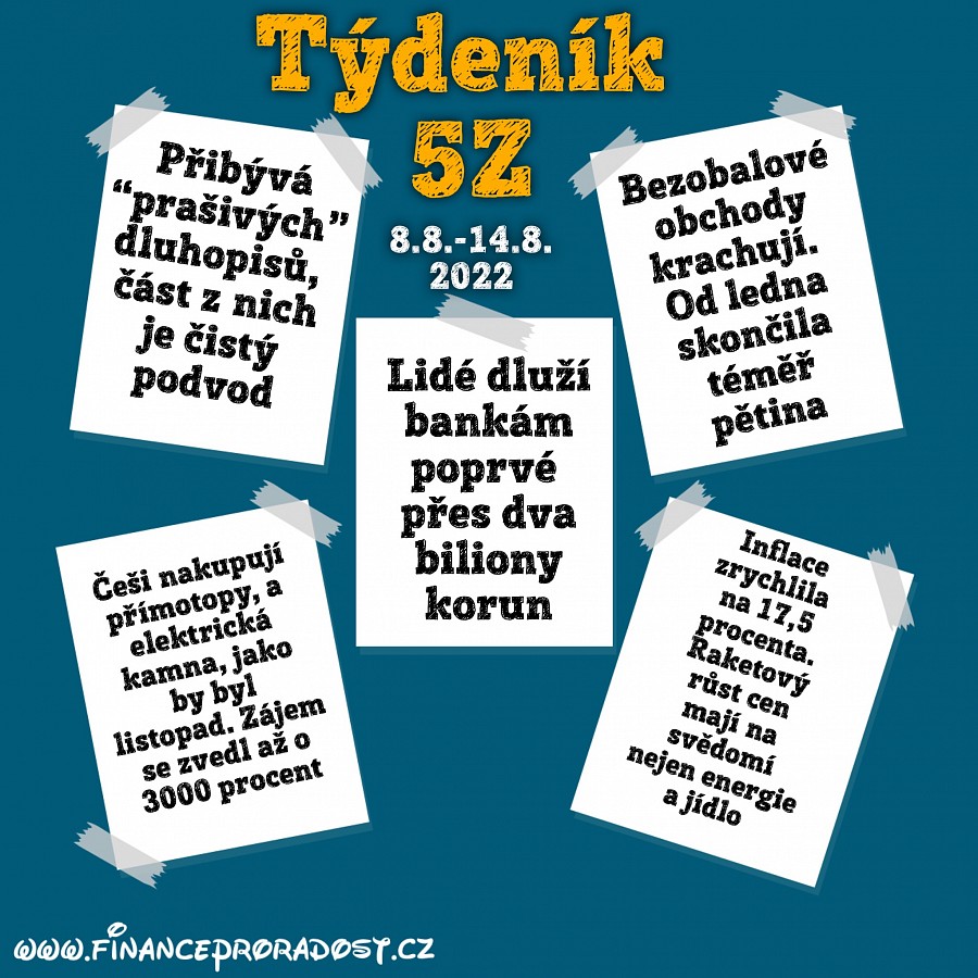 Týdeník 5Z: Pět zajímavostí z české ekonomiky, které se staly v tomto týdnu (8.8.-14.8.2022), a neměli bychom je přehlédnout.