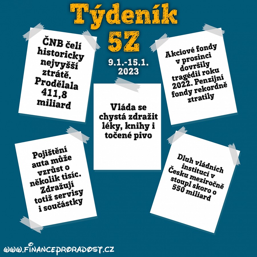 Týdeník 5Z: Pět zajímavostí z české ekonomiky, které se staly v tomto týdnu (9.1.-15.1.2023), a neměli bychom je přehlédnout.