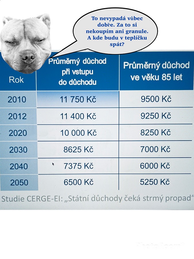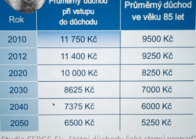 V České republice připadá na necelé čtyři obyvatele v produktivním věku jeden člověk v důchodu. V roce 2045 ale bude na jednoho důchodce méně než dva lidi v produktivním věku. Navíc ne všichni lidé v produktivním věku pracují. Starobní, invalidní a pozůstalostní důchod bude v roce 2022 pobírat téměř tři miliony lidí.